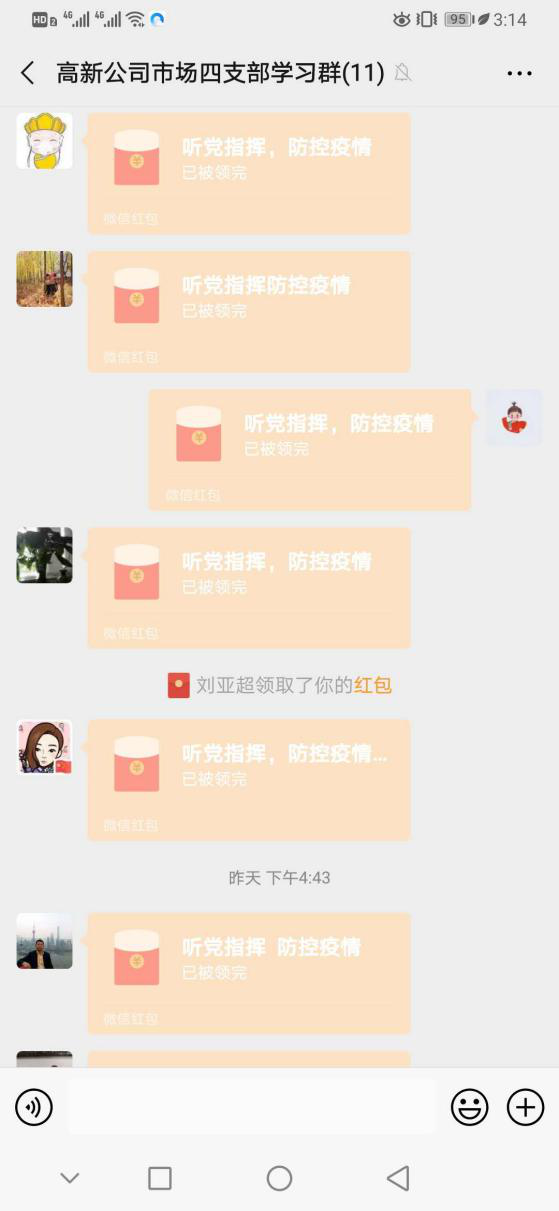 “線上(shàng)”面對(duì)面,發揮黨員(yuán)先鋒模範作(zuò)用(yòng)。支部書(shū)記崔志(zhì)琦組織全體(tδǐ)黨員(yuán)利用(yòng)“學習(xí)強國(guó)”軟件(jiàn)開(kā✔i)展視(shì)頻(pín)會(huì)議(yì)。首先帶領大(dà)家(jiā)一(yī)起學習(xí)了(le)中共中央印發《關于加強黨的(de₹)領導、為(wèi)打赢疫情防控阻擊戰提供堅強政治保證的(de)通(tōng)知(zhī)》、習(xí)近(jìn)平《在統籌推進新冠肺炎疫情防控和(hé)經濟社會(®huì)發展工(gōng)作(zuò)部署會(huì)議(yì)上(shàng)的(de)講話(huà)》,深入學習(xí)領悟了(le)近(jìn)期習(xí)近(jìn)平總書(shū)記發®表重要(yào)講話(huà)精神等,之後全體(tǐ)黨員(yuán)踴躍發言,分(fēn)享疫情期間(jiān)自(zì)己的(de)貢獻與體(tǐ)會(huì)。最後☆支部書(shū)記崔志(zhì)琦倡議(yì)大(dà)家(jiā)積極響應黨中央号召,為(wèi)疫情一(yī)線的(de)工(gōng)作(zuò)人(réβn)員(yuán)進行(xíng)捐款。支部黨員(yuán)率先垂範,積極響應倡議(yì),自(zì)發線上(shàng)捐款,支 部黨員(yuán)共捐款1520元,用(yòng)實際行(xíng)動支援疫情防控工(gōng)作(zuò)。