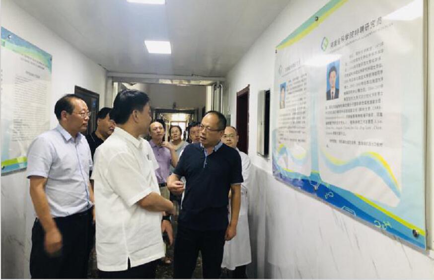 化(huà)學所科(kē)研人(rén)員(yuán)向義馬市(shì)市(shì)委書(shū)記楊彤(右二)介紹實驗室研究方向