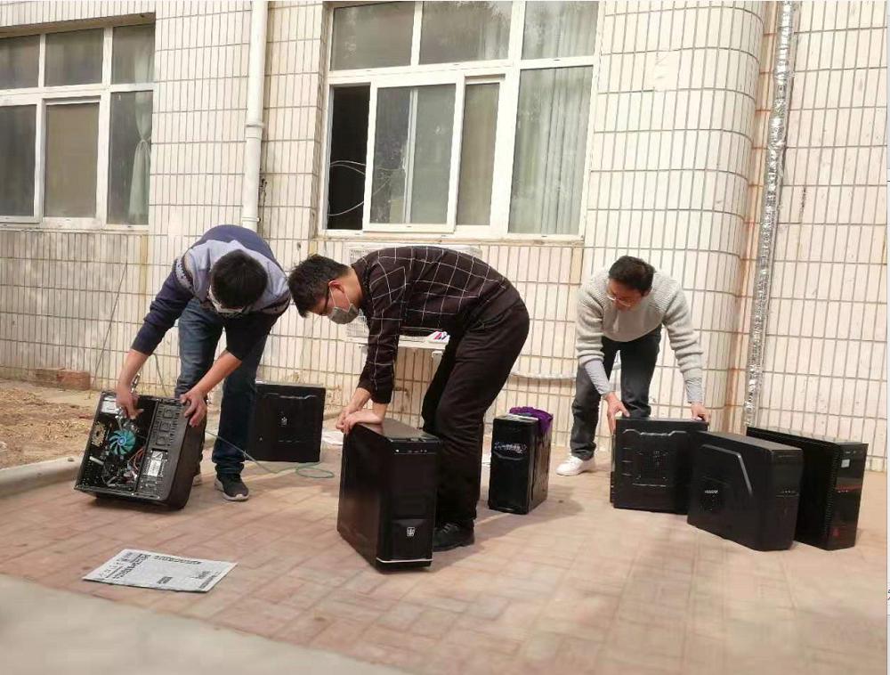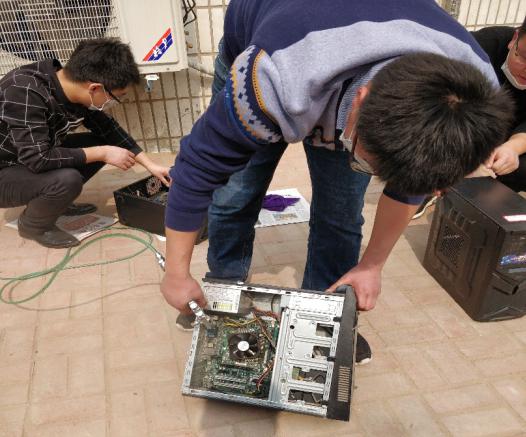志(zhì)願者們對(duì)電(diàn)腦(nǎo)硬件(jiàn)進行(xíng)檢修