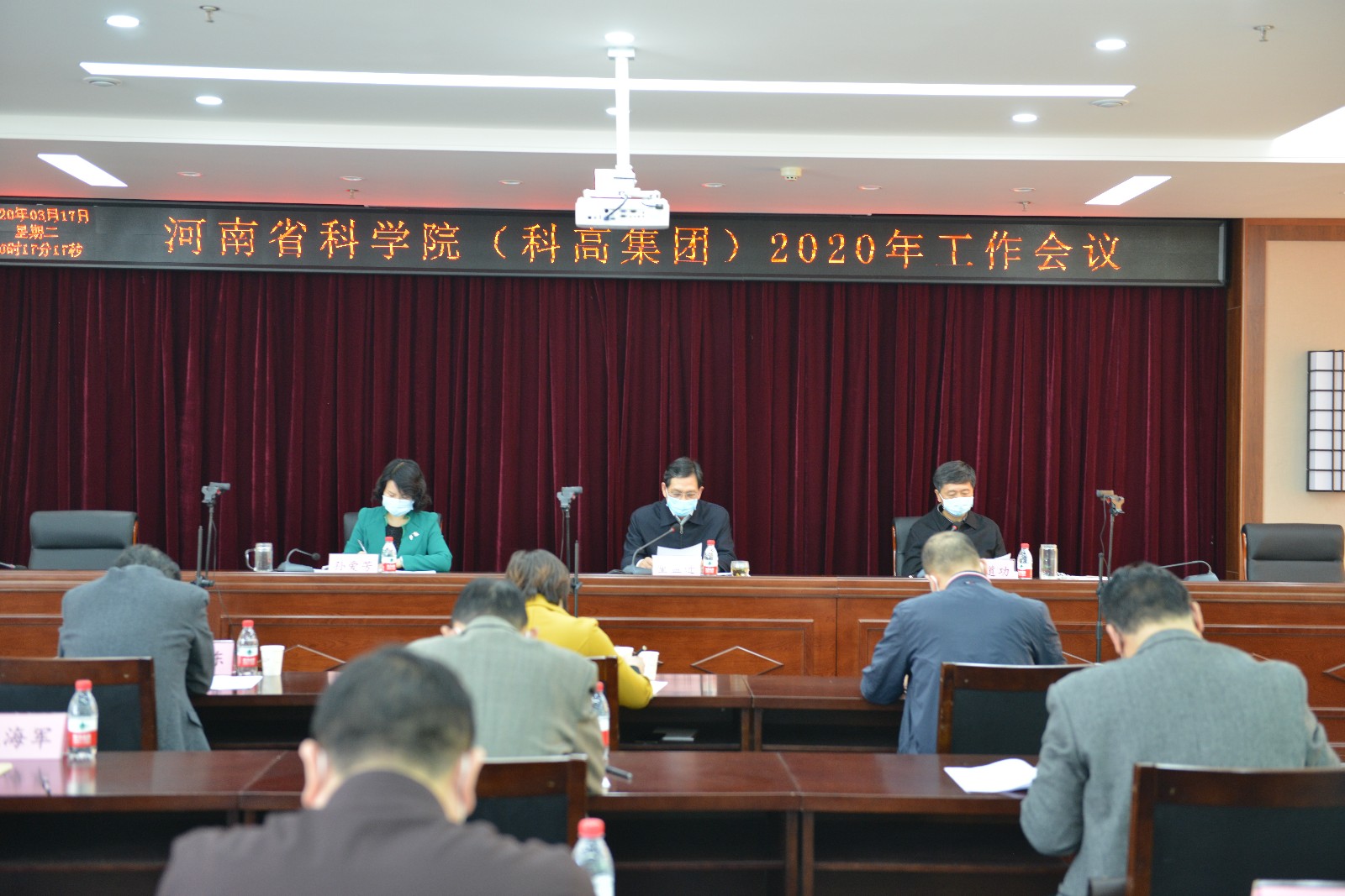 3月(yuè)17日(rì),我院召開(kāi)2020年(nián)度工(gōng)作(zuò)會(huì)議(yì)。會(huì>)議(yì)由院長(cháng)童孟進代表院班子(zǐ)做(zuò)了(le)題為(wèi)《堅定信心 搶抓機(jī)遇 奮勇争先 為(wèi)我省高(gāo)質量發展>做(zuò)出新貢獻》的(de)工(gōng)作(zuò)報(bào)告,院黨委書(shū)記黃(huáng)道(dào)功主持會(huì)議(yì)并講話(§huà)。副院長(cháng)孫愛(ài)芳出席會(huì)議(yì),省紀委監委駐省科(kē)技(jì)廳紀檢監察組毛真、王永慶和(hé$)中科(kē)院河(hé)南(nán)中心副主任楊衛東(dōng)應邀出席會(huì)議(yì)。院系統各單位黨政主要(yào)負責同志(zhì)及院機(jī)關各處室主要(yào)負責同志(zhì)參加了(le)會(huì)議(yì)。全體(tǐ)科(kē)研及管理(lǐ)人(rén)員(yuán)通(tōng)過網絡直播收聽(tīnβg)、收看(kàn)了(le)會(huì)議(yì)。