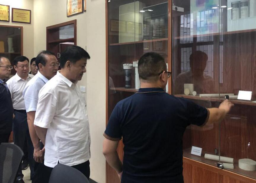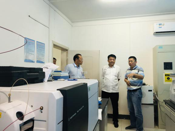 化(huà)學所科(kē)研人(rén)員(yuán)向義馬市(shì)市(shì)委書(shū)記楊彤(右二)介紹實驗室研究方向
