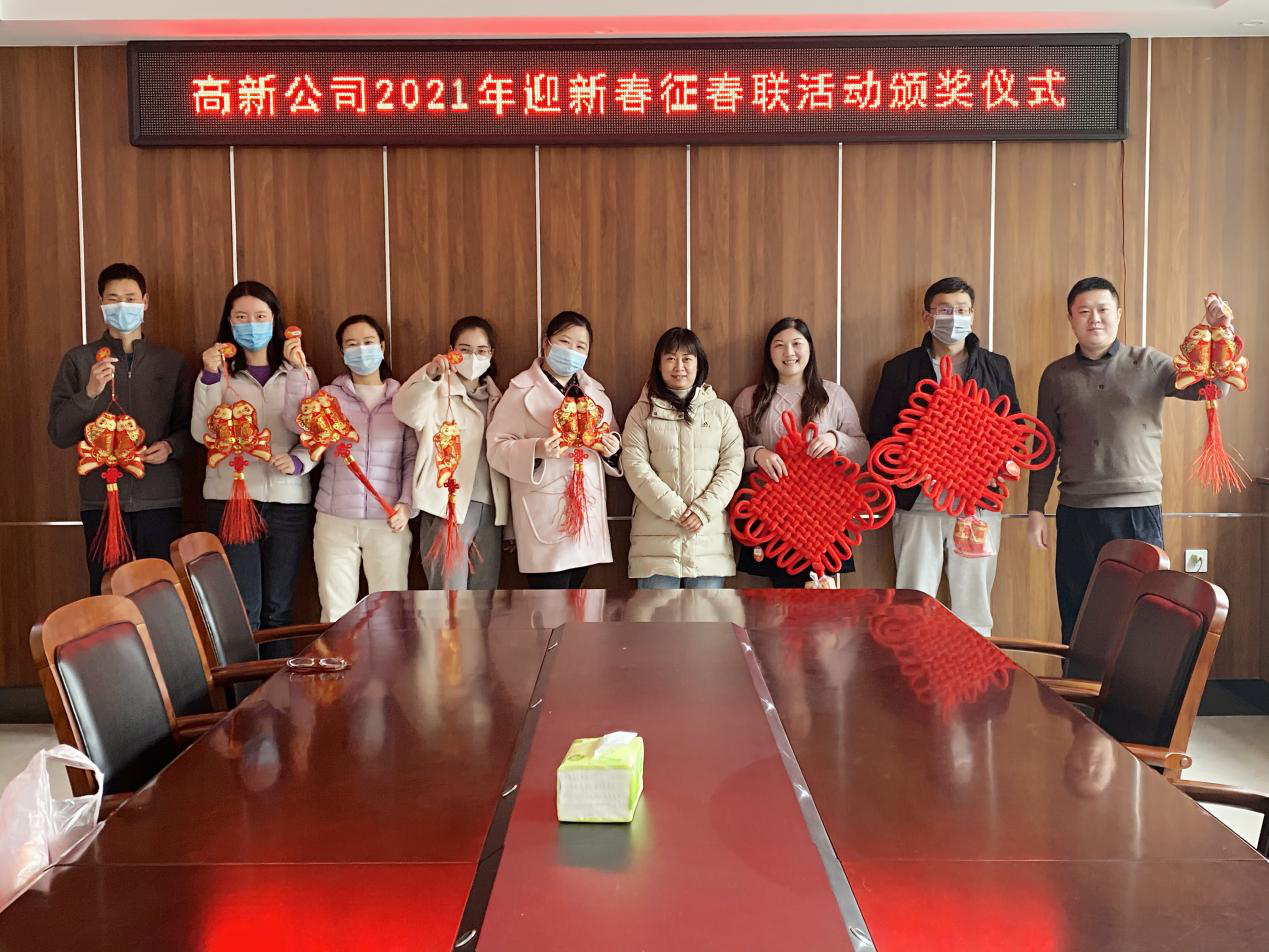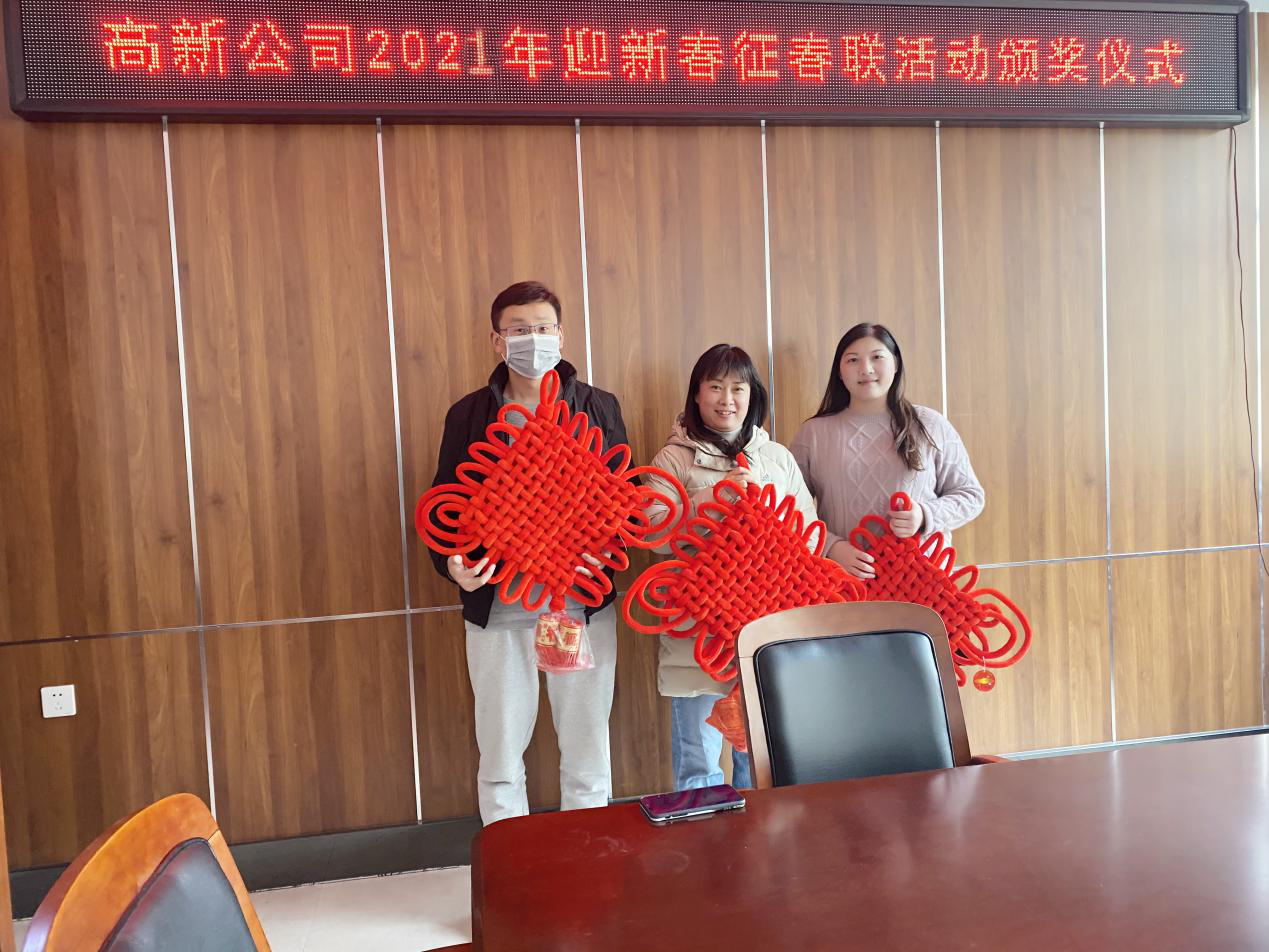 春節是(shì)中華民(mín)族的(de)傳統節日(rì),春聯也(yě)是(shì)春節的(de)傳統習(xí)俗。®為(wèi)弘揚中華優秀傳統文(wén)化(huà),營造歡樂(yuè)、喜慶、祥和(hé)的(de)春節氛圍,2月(♥yuè)4日(rì)上(shàng)午,高(gāo)新公司于公司二樓會(huì)議(yì)室舉辦“2021年(ni®án)迎新春征春聯活動頒獎儀式”。