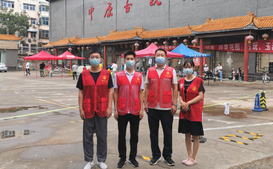 請(qǐng)大(dà)家(jiā)戴好(hǎo)口罩,準備好(hǎo)自(zì)己的(de)電(diàn)子(zǐ)健康碼、核酸檢測碼或身(shēn)份證,間(jiān)隔2米以上(shàng)。”河南耀世萬尊實業有限公司志(zhì)願者們身(shēn)著(zhe)紅(hóng)馬甲積極投身(shēn)鄭州市(shì)經八路(lù)街(jiē)道(dà£o)科(kē)技(jì)社區(qū)中原古玩(wán)城(chéng)核酸檢測采樣點。