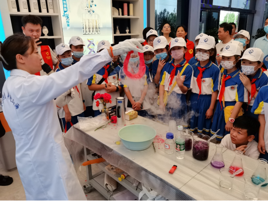 本次活動邀請(qǐng)河(hé)南(nán)省科(kē)學院化(huà)學所科(kē)技(jì)志(zhì)願服務隊陳™繼紅(hóng)、孫敏青等科(kē)研人(rén)員(yuán),利用(yòng)生(shēng)活中常見(jiàn)的(de)物(wù)品為(wèi☆)沁陽市(shì)當地(dì)小(xiǎo)學生(shēng)現(xiàn)場(chǎng)演示了(le)“花(huā)青素奇遇記”、“大(dà)象牙膏&★rdquo;等趣味化(huà)學實驗,并與學生(shēng)互動問(wèn)答(dá),用(yòng)輕松幽默的(de)方式深β入淺出地(dì)講解其中蘊含的(de)化(huà)學原理(lǐ)。演示結束後,在科(kē)研人(rén)員(yuán)的(de)★指導下(xià),在場(chǎng)學生(shēng)踴躍參加動手操作(zuò),親身(shēn)體(tǐ)驗化(huà)學世界的(de)奇妙反應。活動最後,沁陽市(shì)小(xiǎo♥)學生(shēng)在科(kē)創園工(gōng)作(zuò)人(rén)員(yuán)的(de)帶領下(xià)參觀了(le)園區(qū)環境,并合影(yǐng)留念。